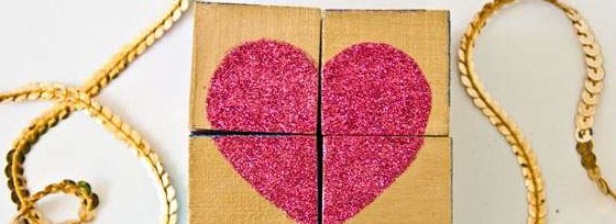 - Клей ПВА наносят на место сердечка уже на кубиках.
