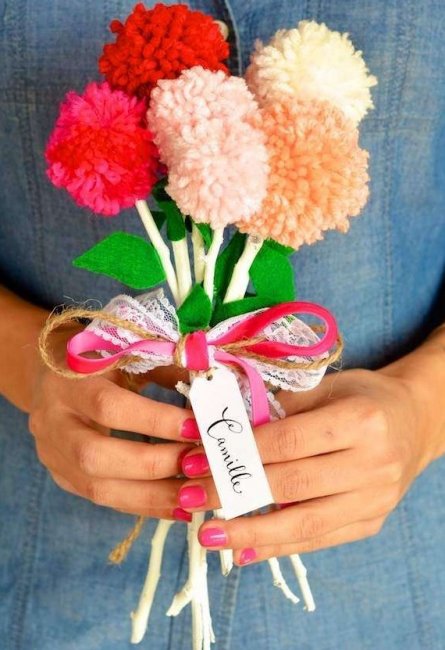 Если вы не знаете, какой подарок на день Валентина смастерить своими руками, тогда обратите внимание на следующее фото. Данный букетик, пожалуй, можно отнести к числу тех самых оригинальных презентов. Для создания оригинального букета подготовьте: