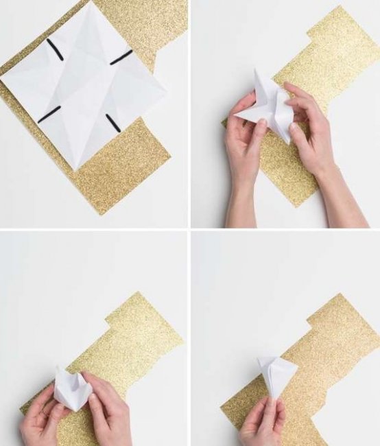 Девушки обожают бриллианты. Во все времена колечки считались приятным подарком. Но если у вас нет возможности подарить настоящее кольцо с бриллиантом, тогда попробуйте сделать его в технике оригами. Изготовить такой бриллиант можно из: листа бумаги, клея и ножниц. Еще вам может потребоваться линейка. Весь процесс создания можно увидеть на фото.
