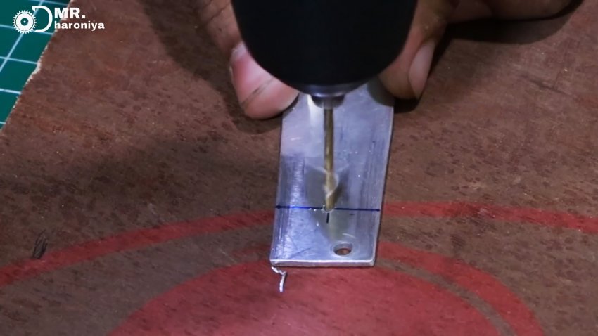 Из листового алюминия вырезается и сгибается 2 уголка для крепления ротора.