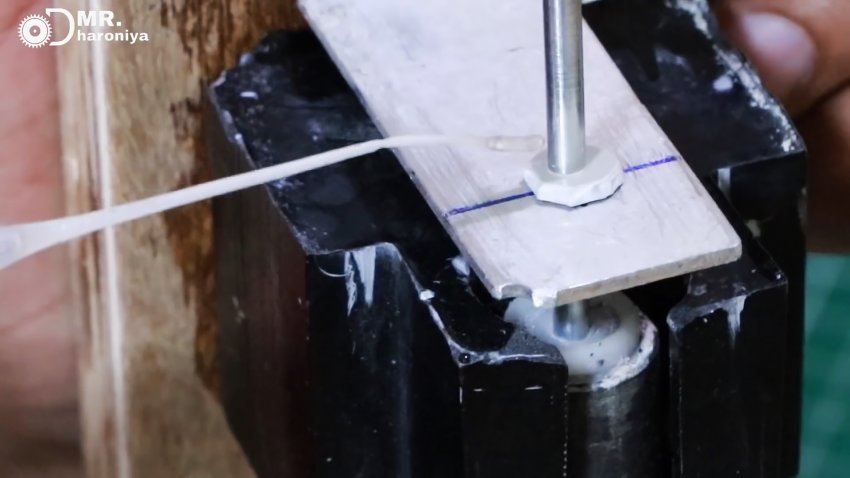 Затем статор приклеивается на основание из влагостойкой фанеры суперклеем.