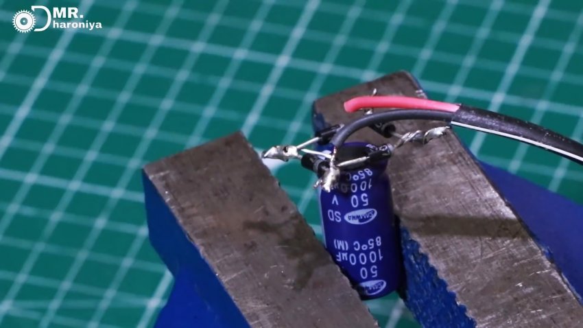 Чтобы сгладить пульсацию тока, выходящего из диодного моста, в схему требуется добавить конденсатор. С ним установка уже сможет работать как полноценный ветрогенератор.