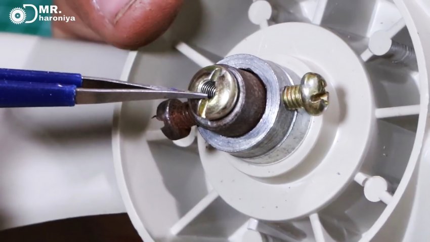 Далее следует заняться лопастями. Их можно снять из сломанного вентилятора. Подсоединить их к валу ротора можно используя переходник – наконечник спицы. Он как раз накручивается на резьбу.