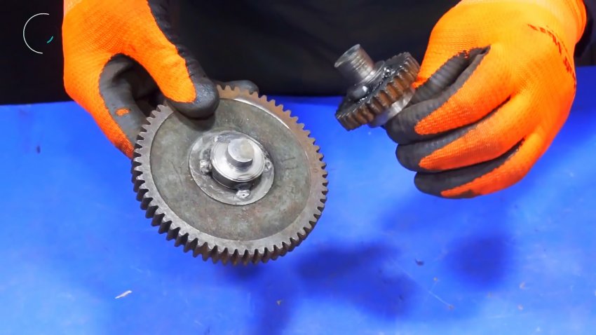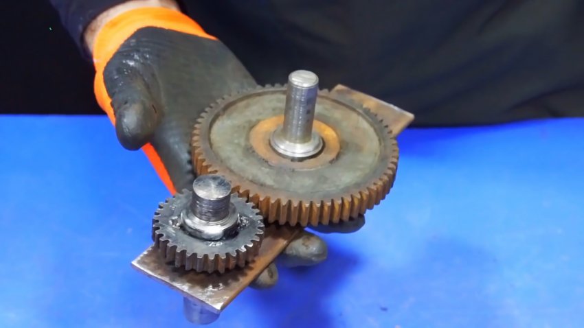 Для изготовления насадка потребуется подобрать 2 шестерни с одинаковым размером зубьев. Чем больше будет одна из них относительно второй, тем выше получаться обороты станка.