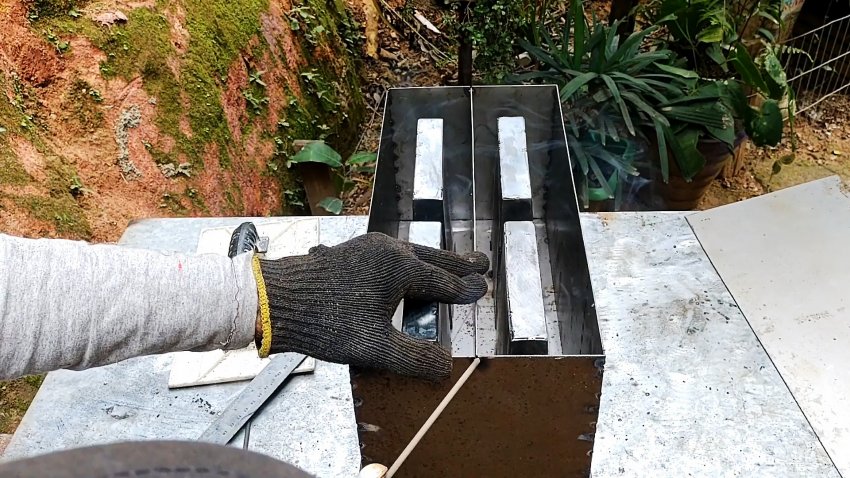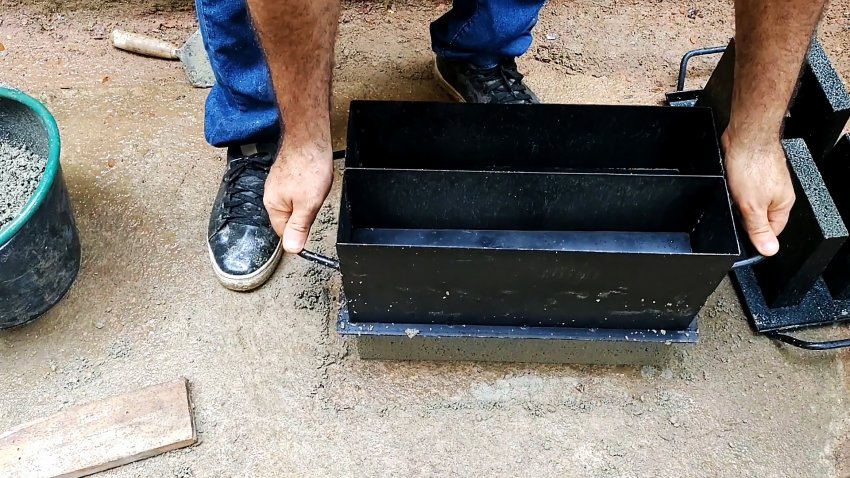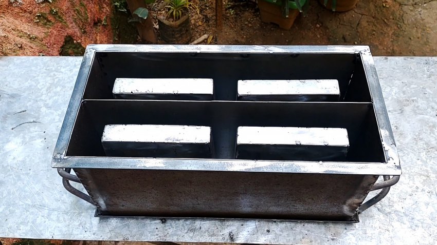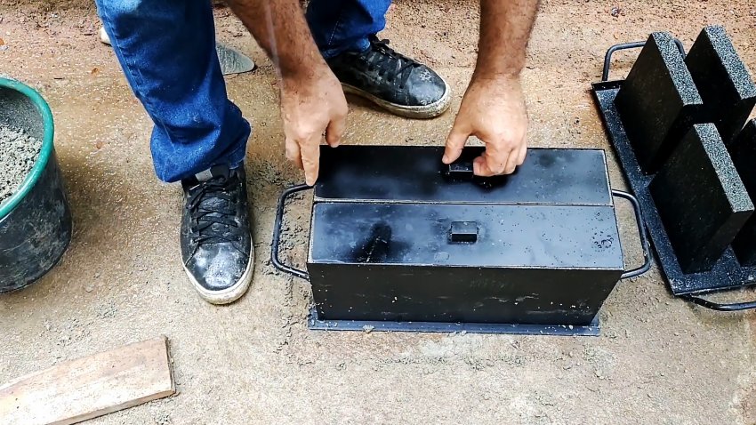 Процесс изготовления формы из металла и формовка с ее помощью блоков на цементе