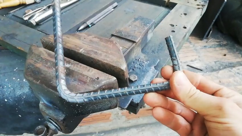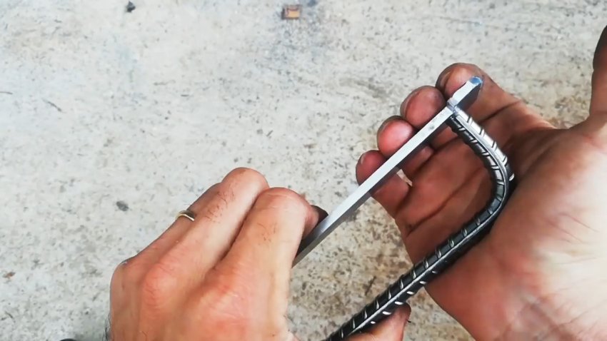 Отрезаем кусок арматуры длиной 21 см. С двух сторон отмеряем по 6 см и сгибаем концы на 90 градусов в одну сторону.