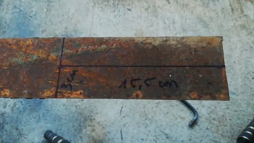 Отделяем от старой металлической полосы шириной 6 см отрезок в 15,5 см.