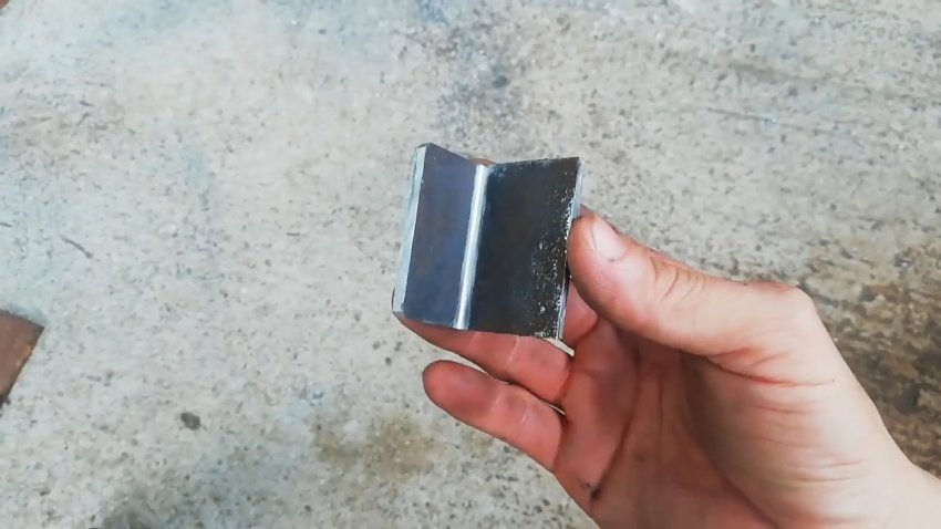 На одной полке старого уголка отмечаем в продольном направлении 4 см, в поперечном – 3,5 см. На второй полке от угла на расстоянии 3 см проводим линию и по разметкам удаляем ненужные участки.