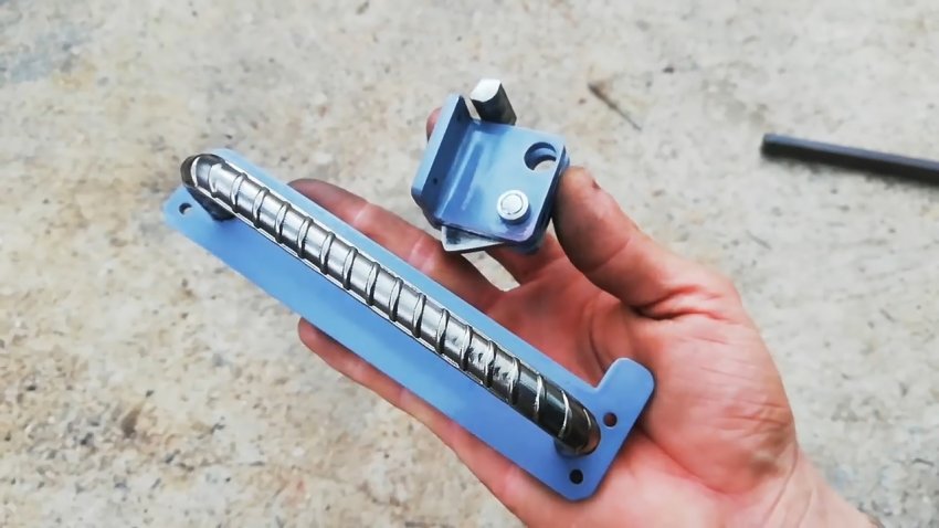 К самому заостренному углу треугольной детали привариваем поперек кусочек арматуры.