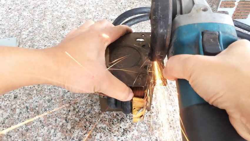 Отрезаем выступающие стороны фланца крепления трансформатора.