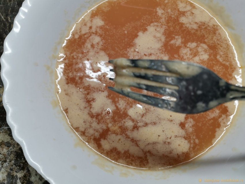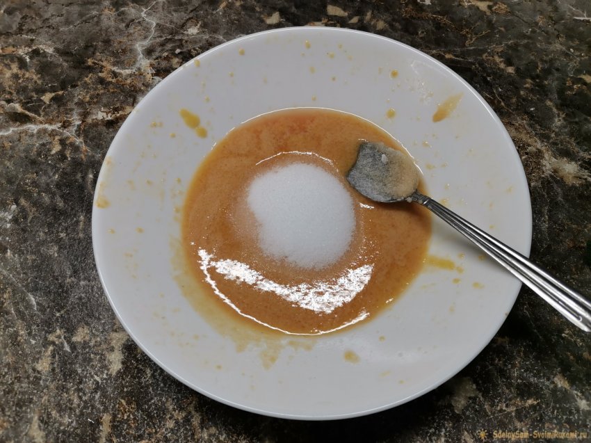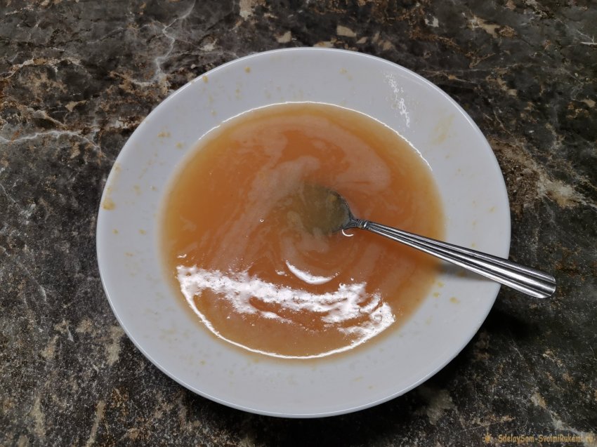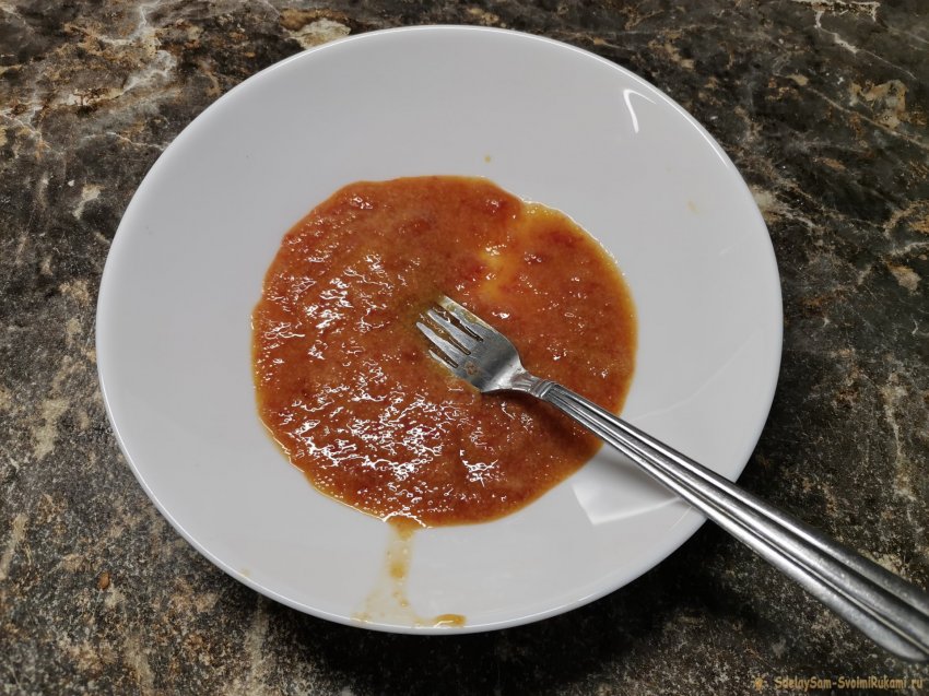 Взбиваем металлической вилкой. В этот момент уже будут отделяться те пленочки, которые остались.