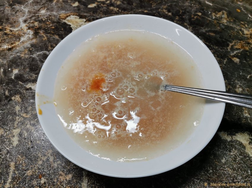 Заливаем зернышки холодной водой, продолжаем взбивать. Белая пена и есть эта пленка, которую следует убрать. Делаем это той же вилкой.