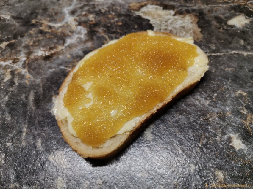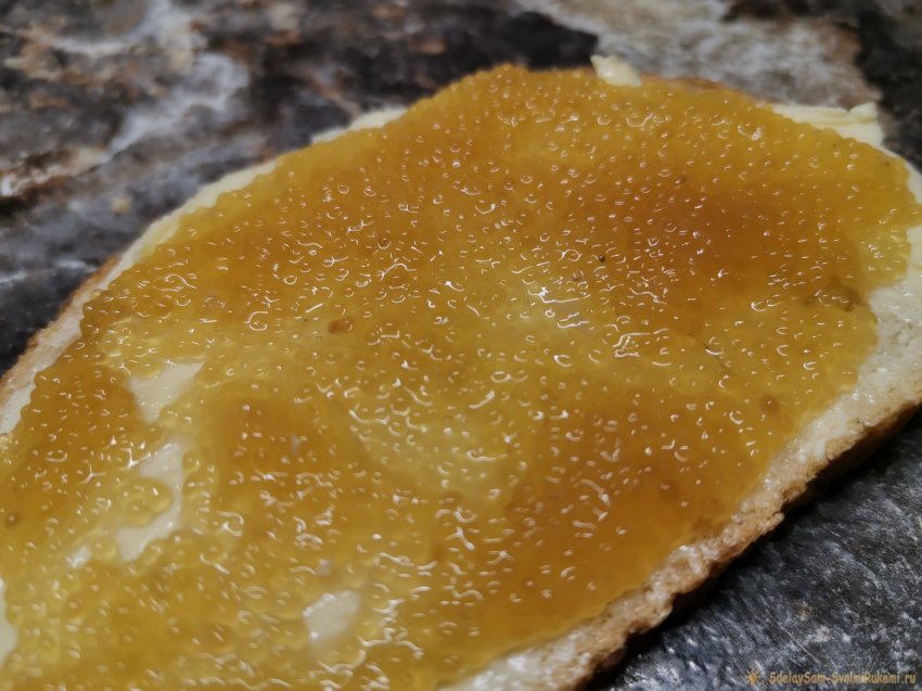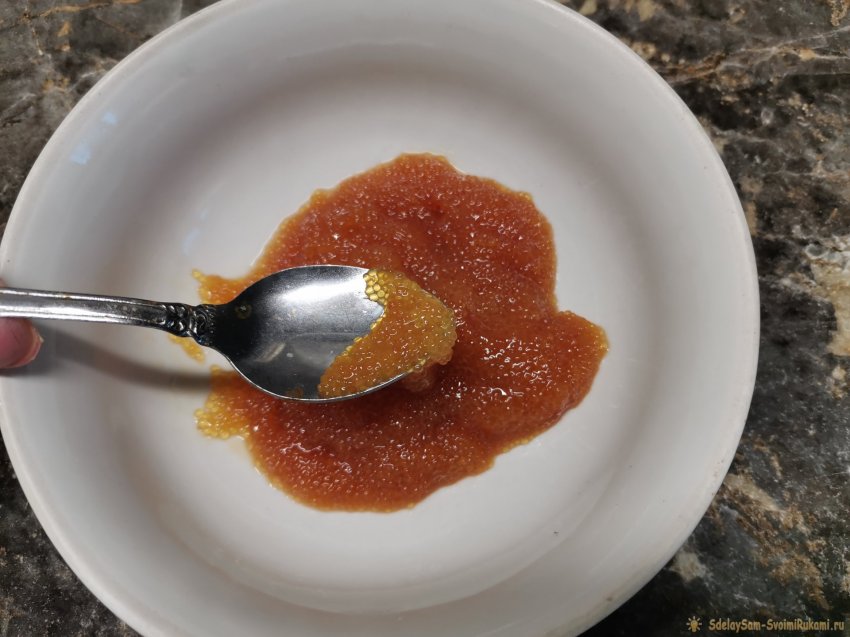 Икра получается очень красивой, зернистой. Икринка отходит от икринки.