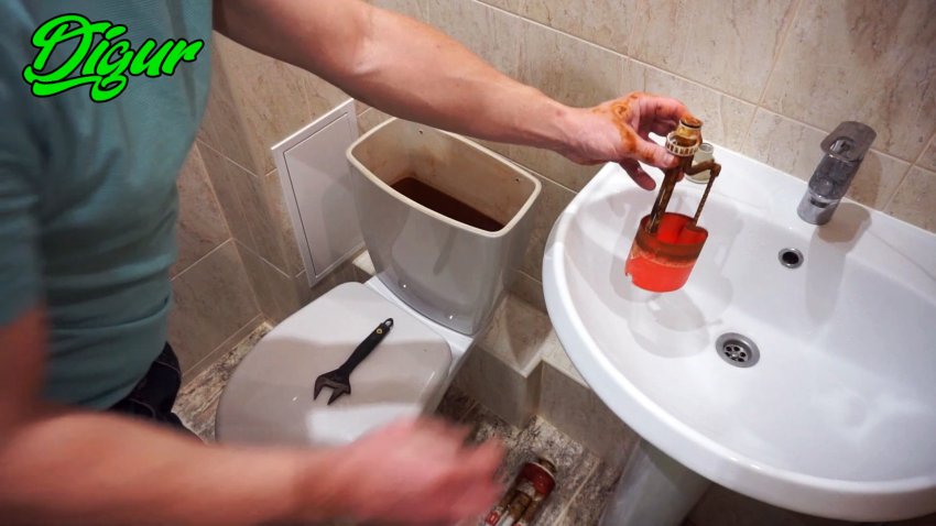 Чтобы проблема не повторялась как можно дольше, необходимо еще и вымыть бачок изнутри от отложений. Для этого нужно снять сливную арматуру.