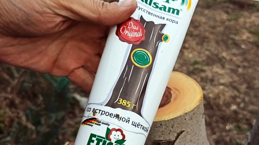 Спил сразу закрываем бальзамом типа «живая кора». Точки роста ниже спила обязательно удаляем, так как если они останутся, то прививка не приживется.