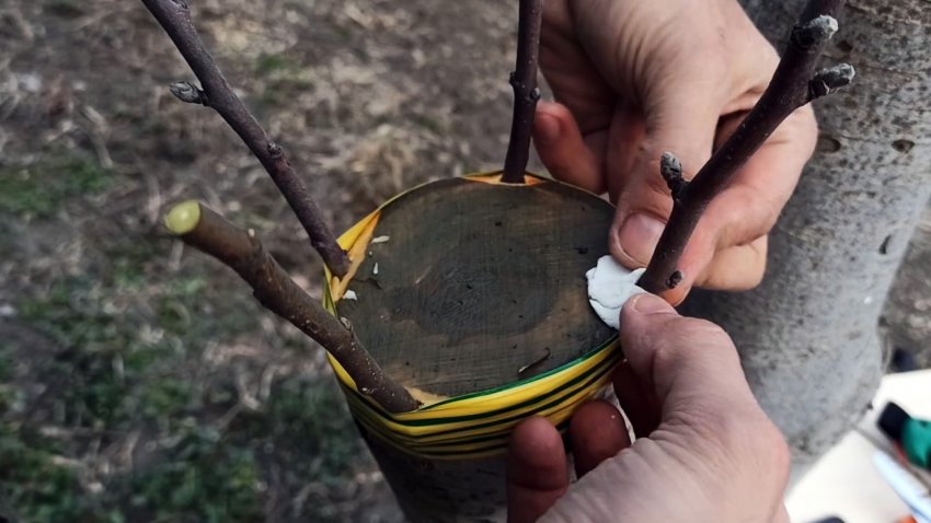Сверху прививка закрывается пластилином.