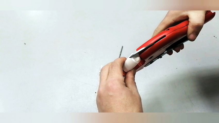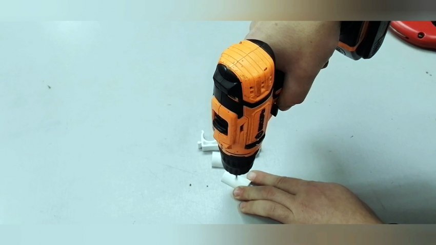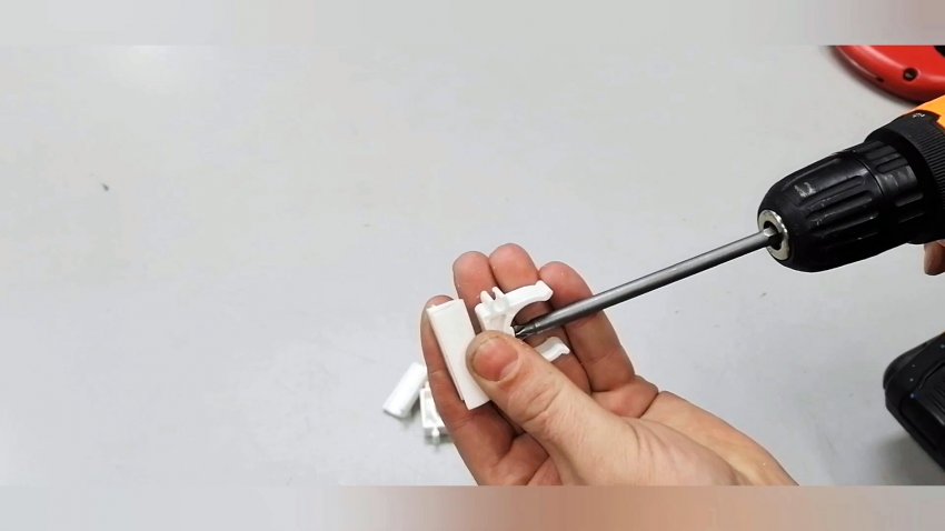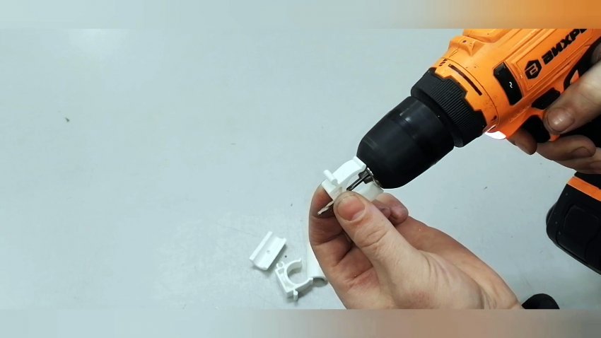 Также рассверливаем клипсу под толщину самореза.