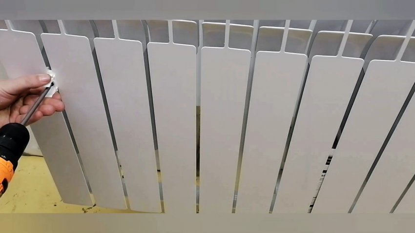 Получившийся держатель просовываем через щель стенок радиатора на необходимую высоту. Фиксируем докручивая саморез.