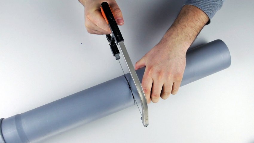 Отрезаем ножовкой от пластиковой трубы заготовку длиной 25 см. Абразивной губкой зачищаем места резки для удаления заусенцев и острых кромок.