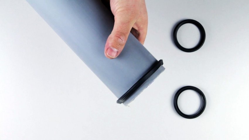 Снимаем глянец с наружной поверхности трубы абразивной губкой и надеваем на нее уплотнительные кольца, размещая их по краям и одно точно по центру.