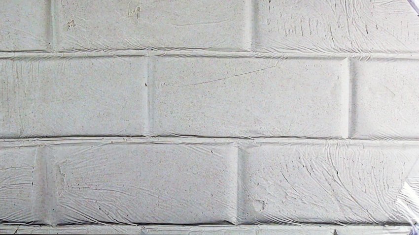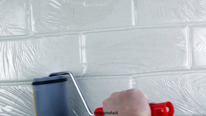 Повторяем процесс по всей поверхности, используя каждый раз крайний след в качестве ориентира для следующей прокатки валика. Снимаем пленку и убеждаемся в том, что гладкая поверхность приобрела вид реальной кирпичной кладки, что смотрится куда веселее.