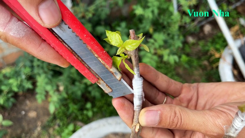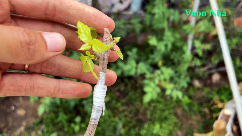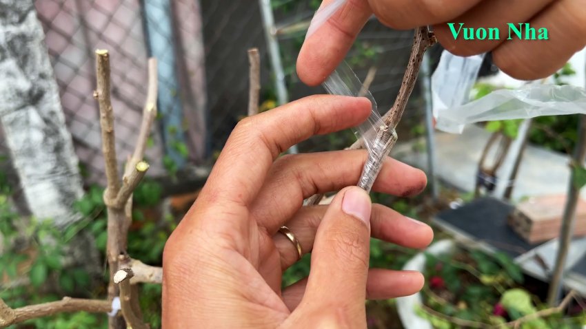 Когда прививки приживутся, нужно будет разрезать ленту, и снять ее. Не следует оставлять обмотку надолго. В случае с бугенвиллией, это можно делать уже через 20 дней.