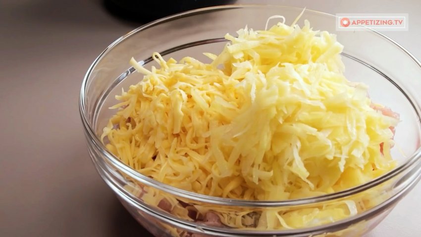 Сыр и картофель натрите на терке, добавьте к ингредиентам.