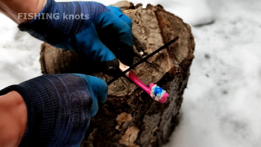 Для легкого извлечения рыболовного крючка из пасти рыбы, вращаем пружинную часть нашего экстрактора вокруг лески, пока она не окажется внутри между ее витками.