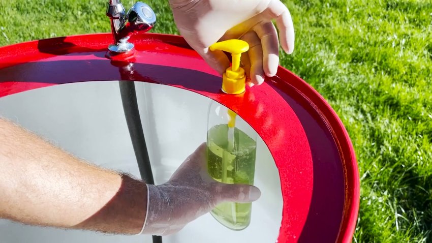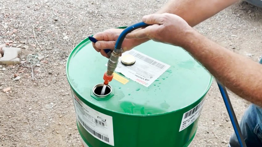 Очищаем бочку изнутри и снаружи водой из шланга.