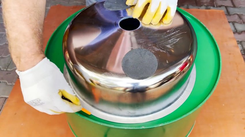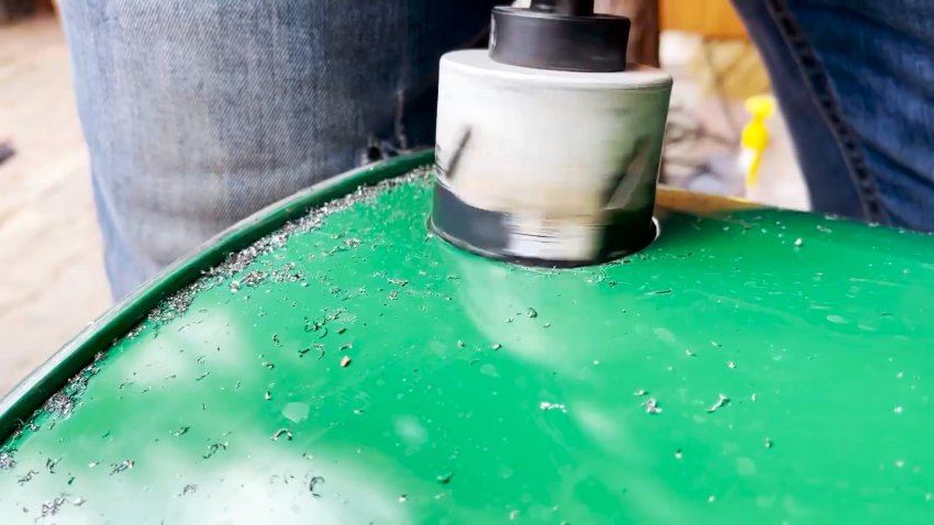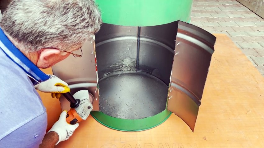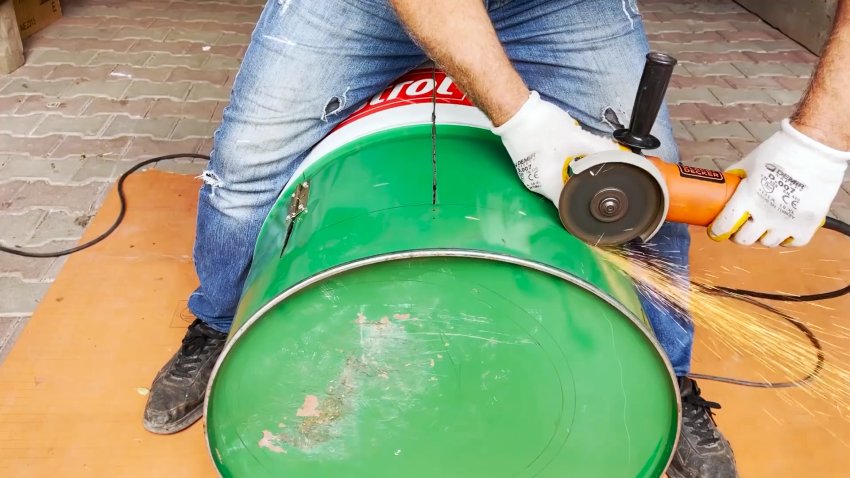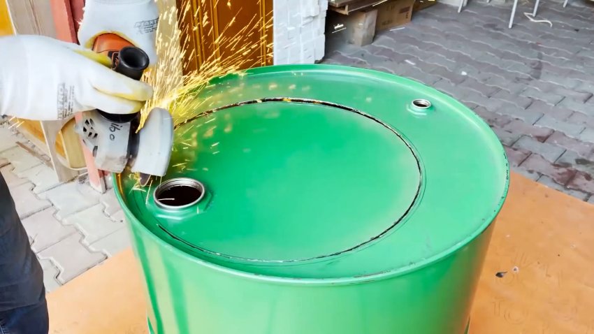 Процесс изготовления садовой раковины из старой металлической бочки объемом 200 литров