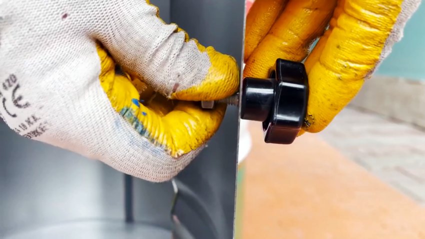 В створках сверлим отверстия и прикручиваем снаружи ручки-барашки с помощью гаек.