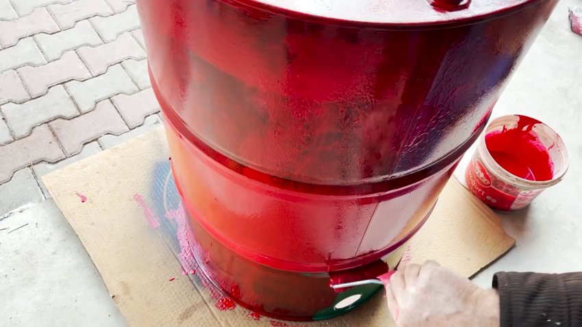 Окрашиваем бочку внутри и снаружи в цвета по своему усмотрению.