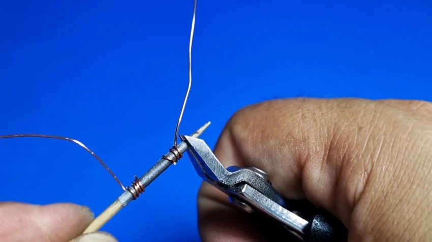 На небольшом расстоянии делаем второй электрод. Лишнюю шпажки откусим кусачками по обеим сторонам.