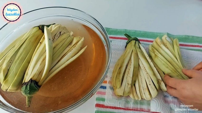 Соль растворите в холодной воде, опустите овощи и оставьте на 15 минут. Промокните бумажными салфетками и просушите.