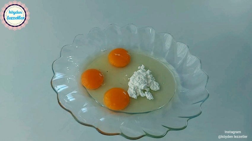 В чашке соедините крахмал и яйца, размешайте венчиком до однородности.