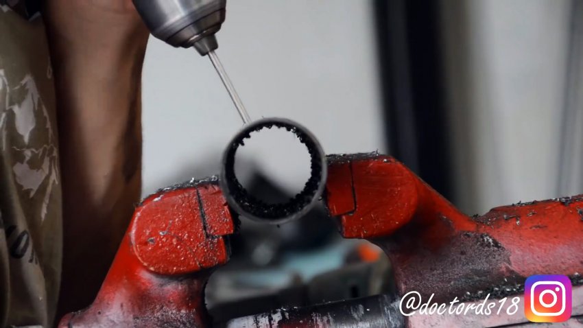 Всю цилиндрическую поверхность трубы малого диаметра между метками равномерно перфорируем с помощью сверления дрелью.