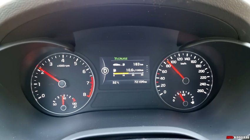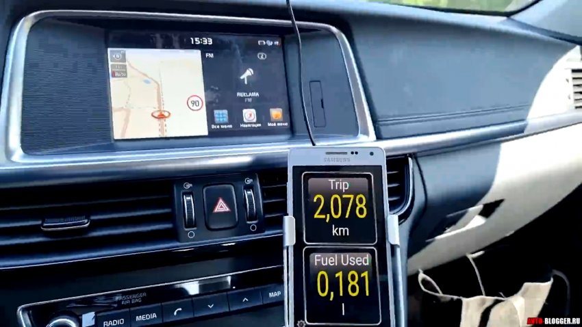 Для всех заездов выбираем расстояние 5-7 км по ровной горизонтальной трассе. Разгоняем автомобиль до 90 км/час и ставим на круиз. Работу кондиционера ставим на 4 деление. Охлажденный воздух направляем на стекло и ноги без рециркуляции. Фиксируем наружную температуру, которая равна +32 градуса Цельсия. Показатели пробега и расхода топлива на телефоне сбрасываем на 0.