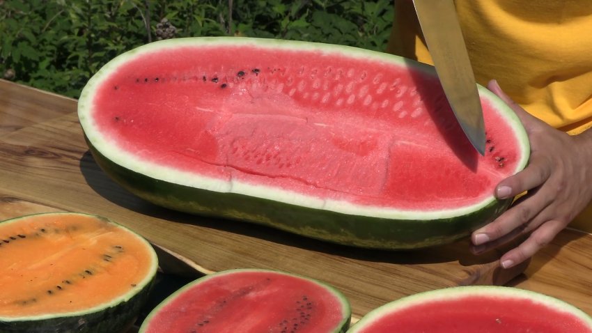Об отсутствии нитратов в арбузе говорят следующие внешние показатели: