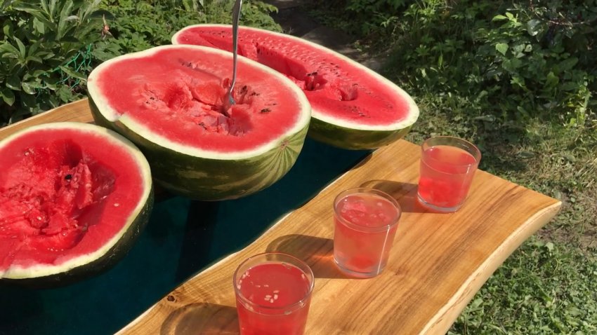 Наиболее объективен следующий опыт. Растолчем в стакане чистой воды мякоть арбуза, при этом помутнение говорит об отсутствии нитратов. Если же вода окрасится, то это признак присутствия в арбузе нитратов.