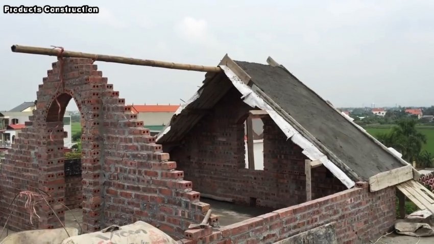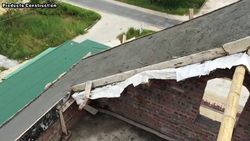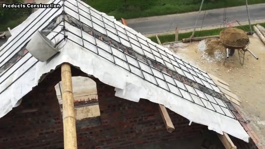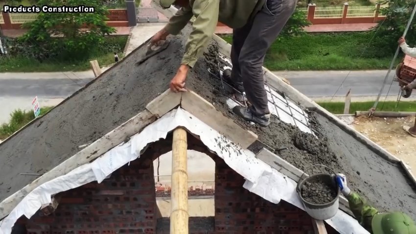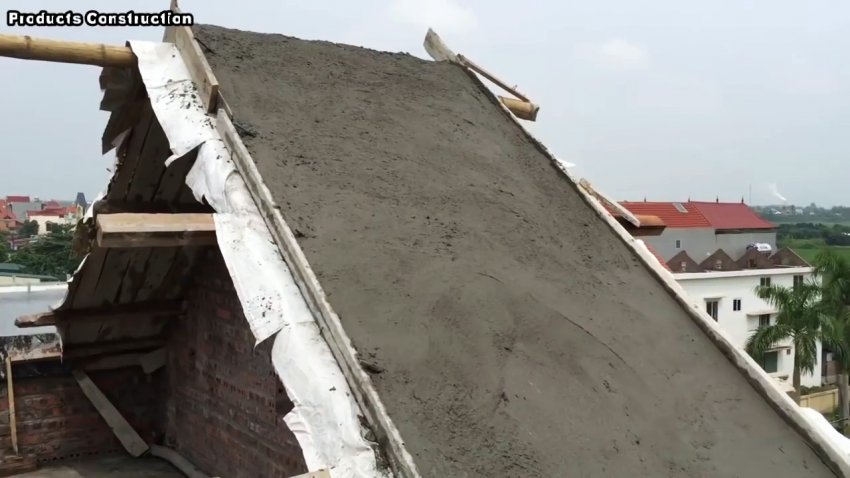 Процесс строительства наклонной крыши из бетонного раствора своими руками