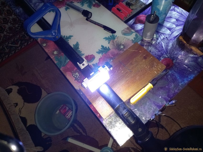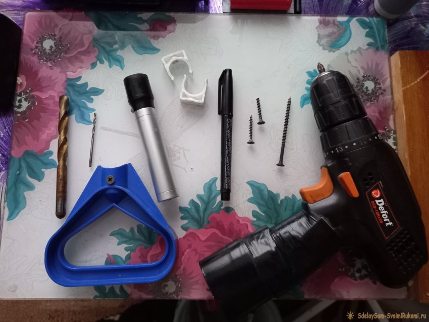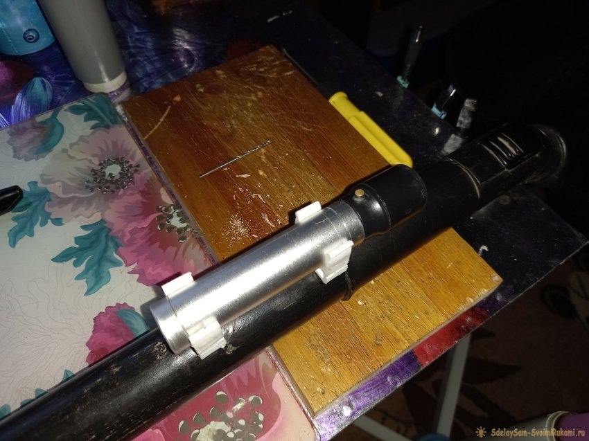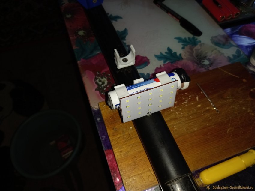 - Клипсы для водопроводной трубы 2шт (диаметром, подходящим под диаметр рукоятки Вашего фонарика).