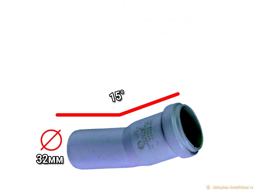 - Полуотвод сантехнический, с уклоном на 15 градусов, диаметром 32мм.