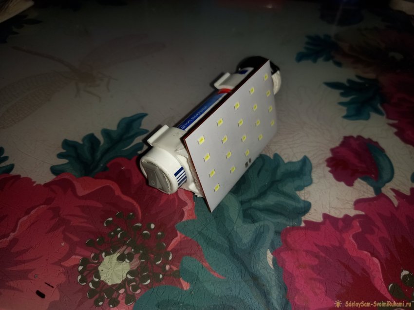 Припаиваем проводку, заталкиваем аккумулятор в любой подходящий корпус, приклеиваем с торцов выключатель и модуль зарядки, приклеиваем к диодной панели ещё пару клипс, и крепим к корпусу.