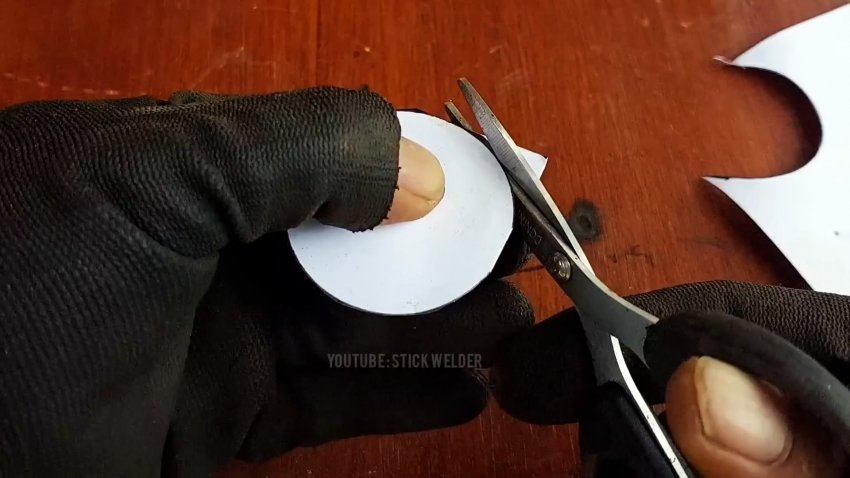 Для этого врезаемую трубу ставим вертикально на обычный лист бумаги, обводим маркером ее наружный контур и по нему вырезаем ножницами бумажную окружность.