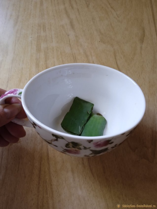 Сначала нужно приготовить маточный настой. Возьмите 1-2 нижних листа алоэ или столетника, нарежьте небольшими кусочками, сложите в банку и залейте 0,5 л воды. Накройте настой крышкой (неплотно) и поставьте в темное, укромное место, например, в кладовку, на 1 неделю.