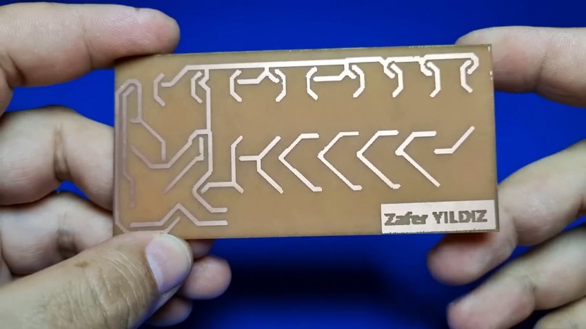 Учитывая простоту схемы и минимум деталей, используемых для индикатора, устройство можно собрать даже навесным монтажом. Но если не полениться, и изготовить хотя бы простейшую печатную плату, то самоделка будет выглядеть более законченной, более стильной. Приступаем к сборке.