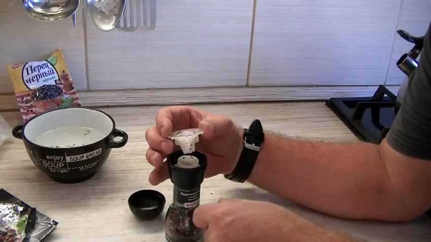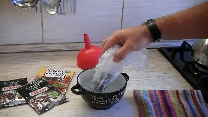 Им в этом желании помогают народные умельцы. Рассмотрим 3 способа, как превратить одноразовую мельницу для специй в многоразовую. Для этого понадобится сама мельница, перец-горошек и другие специи в пакетиках, воронка, емкость для воды, полотенце, полиэтиленовый пакет и чайник для приготовления кипятка.