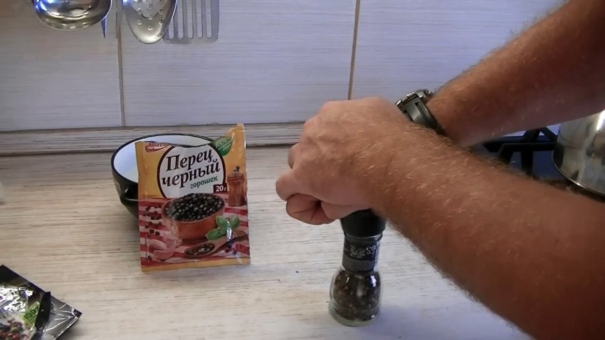 В пустую емкость мельницы с помощью подходящей воронки засыпаем перец-горошек и другие необходимые специи. Содержимое баночки тщательно перемешиваем путем многократного и интенсивного встряхивания.