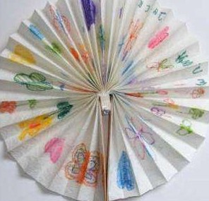 - . Красивая и полезная поделка – веер, который поможет ощутить прохладу в душном помещении. Не забудьте на веере нарисовать рисунки, которые придадут ценность вашему подарку.
