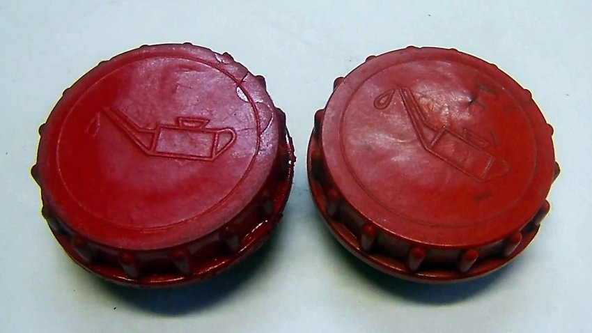 Дожидаемся затвердевания жидкого пластика или двухкомпонентной эпоксидной смолы и разбираем силиконовую форму. Обрезаем стержни и срезаем облой. В результате получаем крышки, идентичные настоящей.
